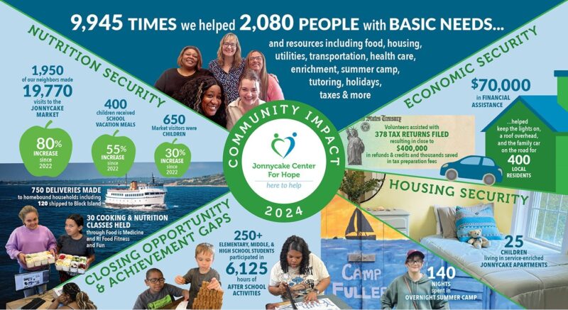 Jonnycake’s mission is to provide basic needs, resources, and hope to our neighbors in need. Our vision is a community without hunger and poverty, where everyone can improve their quality of life and reach their full potential.
